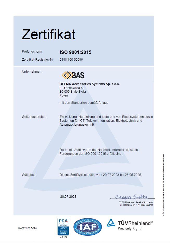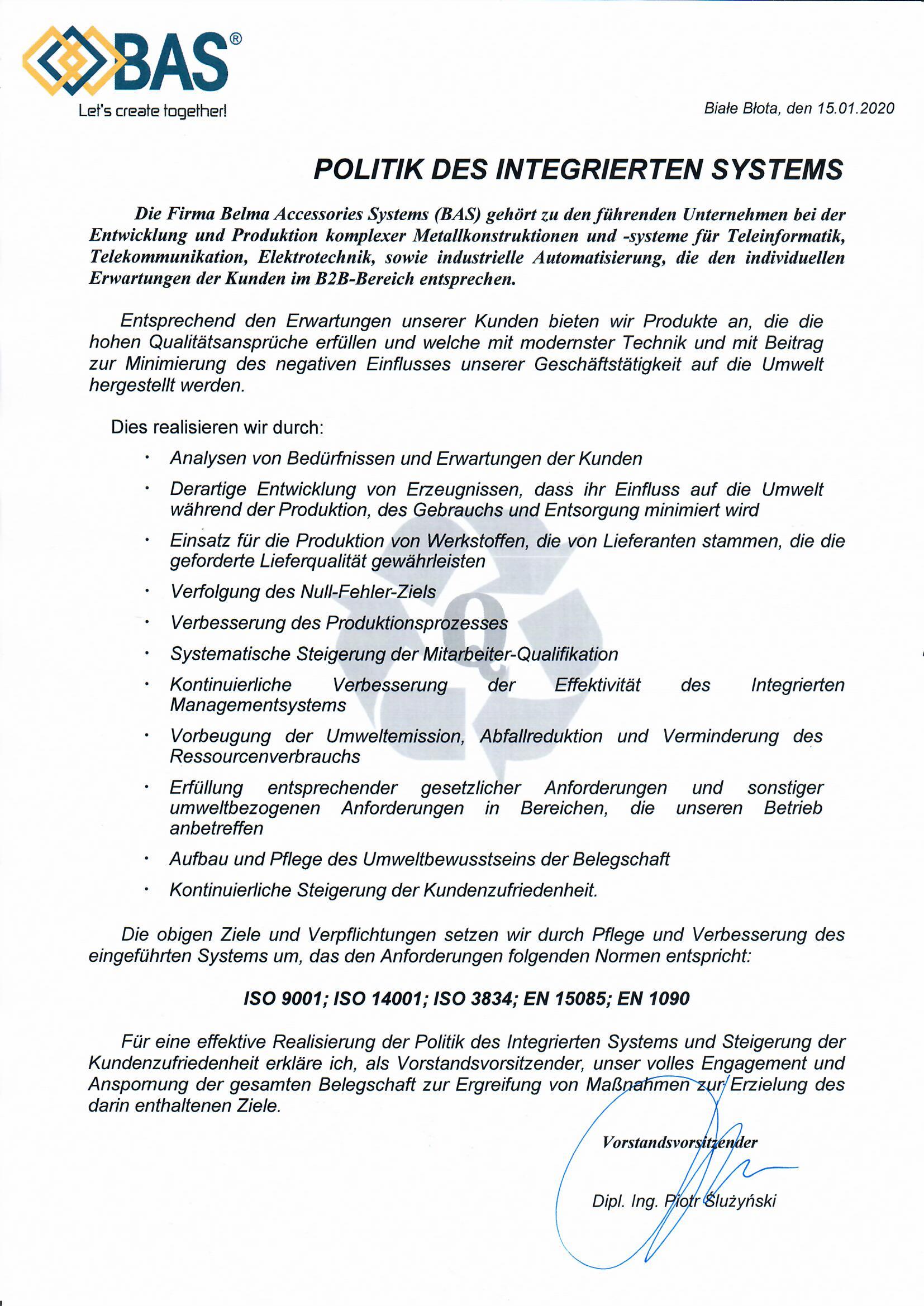 Wir verfügen über Managementsysteme, die nach den folgenden Normen eingeführt, zertifiziert und systematisch verbessert werden: